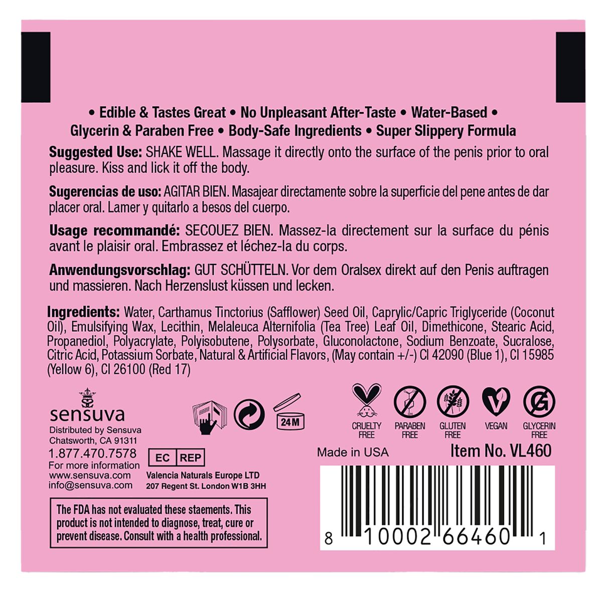 Lubricante con Sabor Sensuva Algodón de Azúcar 6 ml